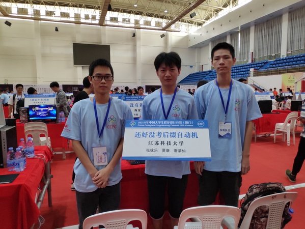 1019日至20日,第5CCPC中国大学生程序设计竞赛在厦门举行,来自全国169所高校的238支队伍同场竞技,双一流高校悉数参加。计算机学院在8月底举行的网络赛中从2500多支队伍中脱颖而出,进入全国赛,经过两天智力与体力的现场激战,面对来自全国包括清华大学、北京大学、复旦大学、上海交通大学、南京大学、浙江大学等在内许多名校计算机顶尖人才,由张咏乐、夏康、唐清仙三位同学组成的还好没考后缀自动机队在教练景国良老师带领下戒骄戒躁,勇于拼搏,最终勇夺银奖,这是我校获得的第一枚CCPC银奖,实现了历史性的突破。
