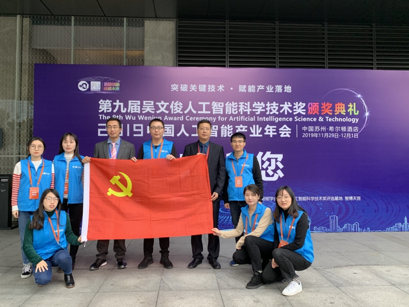 由中国人工智能学会主办,第九届吴文俊人工智能科学技术奖颁奖典礼暨2019中国人工智能产业年会(CAAIAM)于2019年11月30日¾12月1日在苏州园区希尔顿酒店(苏州广电演播大厅)举行,我校计算机学院获奖教师团队及22名志愿者参加本次典礼。