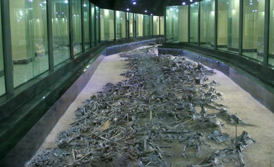 展览室里陈列的一张张照片、一封封书信,甚至每一件衣物首饰,都在诉说平顶山发生的惨案。展览大厅里存在一个长80米、宽5米的遗骨池,池内800多具殉难同胞的遗骨保存着发掘时的原貌,或仰或俯,或曲或伸,纵横叠压,惨不忍睹。
