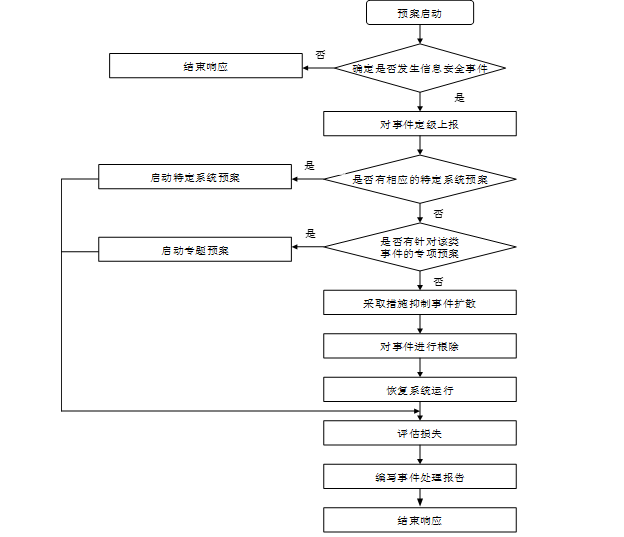 (3)如果没有针对该事件的应急预案,应根据事件具体情况,采取抑制措施,抑制事件进一步扩散,并根除事件影响,恢复系统运行;