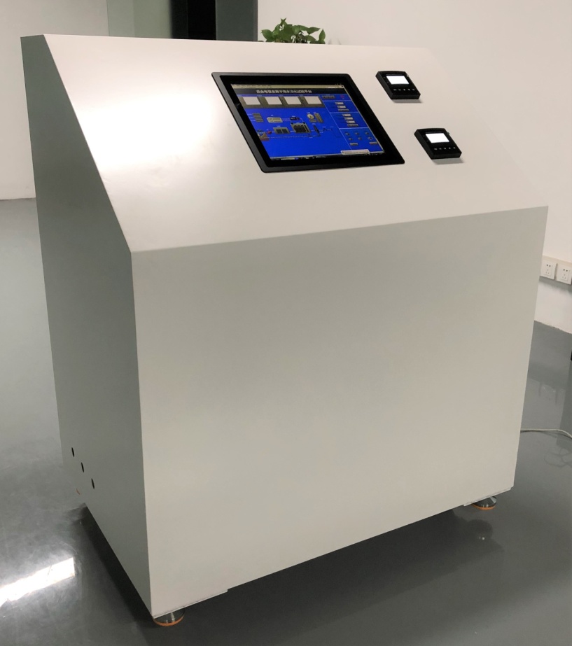 团队成员与环化学院团队合作,参与了该团队HCDI海水淡化设备的研发,协助其完成了设备中的电路设计及智能监测APP的开发工作,并最终形成样机,样机如图3所示: