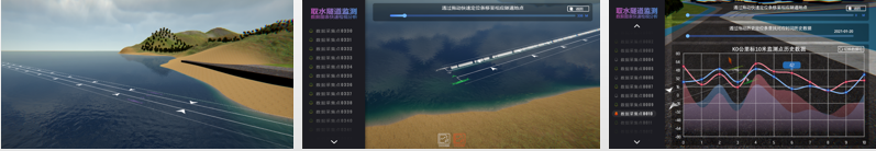 系统基于虚拟现实技术完成隧道及周边环境的高精度建模,通过现场光纤传感获取实时数据,并基于U3D完成数据的可视化交互。系统提供数据实时更新、数据展示、自动巡检、定期巡检、数据导出、设置报警值、设置计算公式参数等定制功能。同时还为用户定制了光影、高光、动态UI、标尺、自发光等内容使得系统界面符合用户习惯,更加美观。