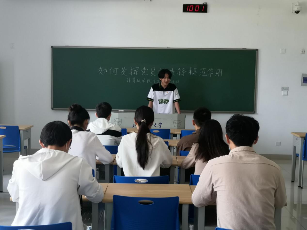 计算机学院学生第三党支部的预备党员鲁昊昕认为:学生党员要发挥先锋模范作用,应多多与广大同学交流,了解他们的想法,同时还需要保持学习成绩优异,在学业上给予同学帮助。