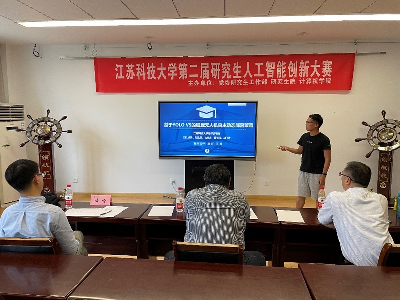 2022年5月27日,江苏科技大学第二届研究生人工智能创新大赛于计算机学院成功举办。本次大赛由党委研究生工作部主办,由计算机学院承办,大赛分为技术创新与应用创意两个类别,报名参赛队伍来自全校各个学院,共有32支队伍,100多名选手参赛。江苏科技大学党委研究生工作部部长祁凯,江苏科技大学研究生院副院长、党委研究生工作部副部长梅岭,计算机学院院长高尚,副院长史金龙、副院长杨习贝及张明副教授担任本次大赛的评委。