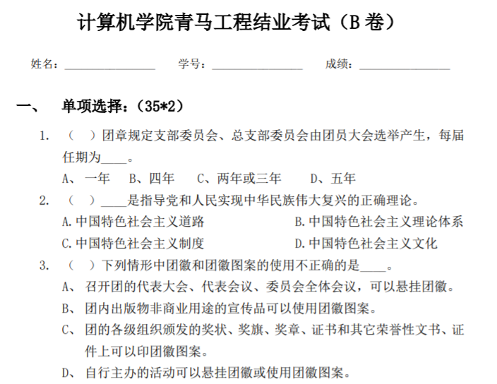 本次考试分为A、B卷,试卷包括单选题和多选题两种题型。在考后成绩的统计中,成绩达到80分以上的学员占比达到72%,其中不乏满分学员,彰显了自身忠诚的政治品格与扎实的理论功底。