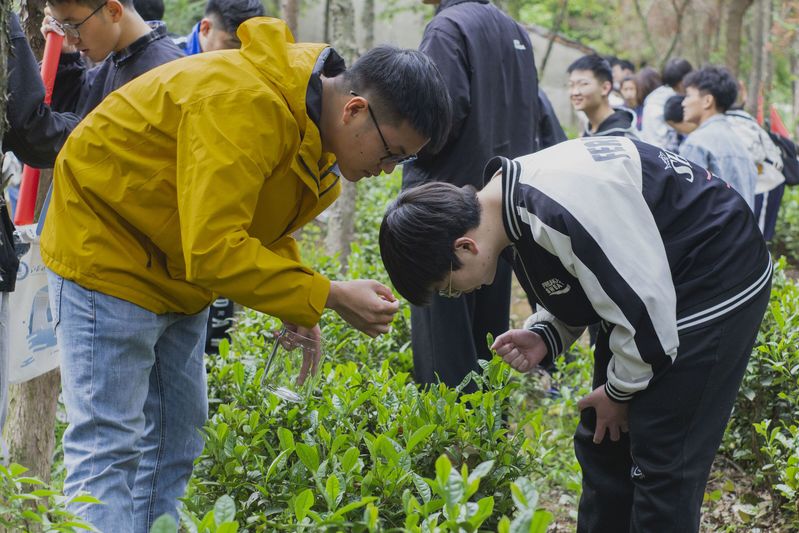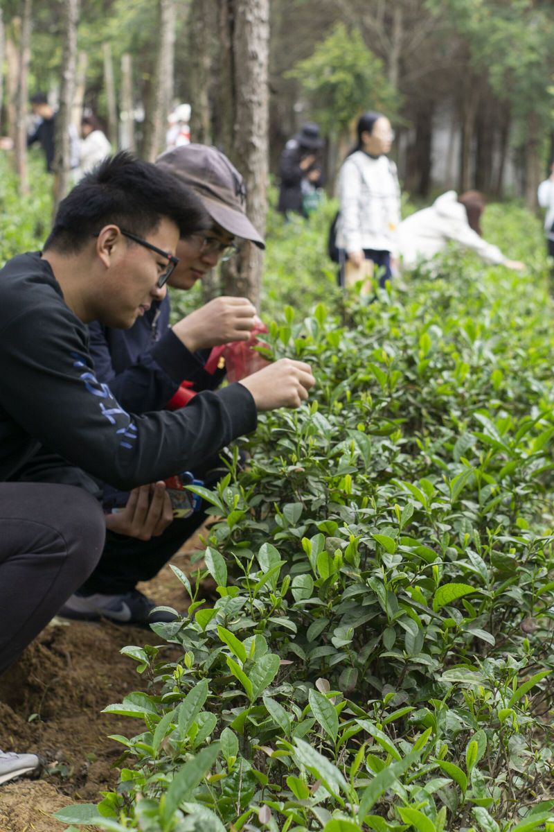“采茶时,要采用‘提采’方法 ——‘一捏、一提、一放’,拇指和食指捏住茶梗,叶子分在手掌虎口两边,采摘茶青最下面一叶贴在虎口内,轻力上提采后放入着茶篓。” 采茶经验丰富的当地茶农在现场当起了技术指导,手把手教说着如何采茶。一些从未采过茶的同学们惊叹:“竟没想到,看似容易的采茶竟然有着这么多的门道。”