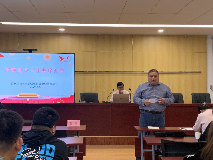 为深入开展学习贯彻习近平新时代中国特色社会主义思想主题教育,扎实推进党员教育培训工作,深化提升培训实效,进一步增强广大师生党员党性修养,55日上午,计算机学院党委邀请江苏科技大学组织部科级组织员杨文立老师,就《发展党员工作程序》进行专题讲解,以进一步明确党支部发展党员工作的流程与规范,解答发展工作过程中实际遇到的问题。计算机学院党委书记高尚出席并主持,船舶与海洋工程学院、能源与动力学院、经济管理学院、计算机学院、粮食学院组织员、支部书记、支部委员参加。