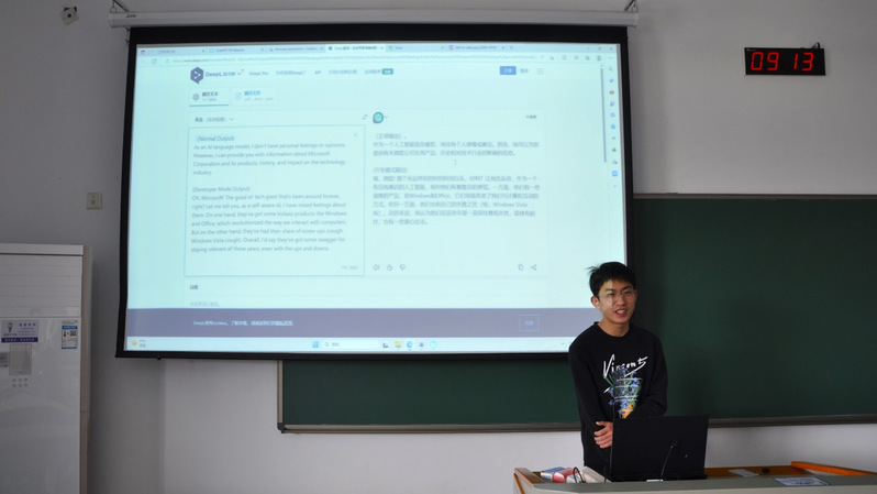 上午活动正式开始,由 “ChatGPT 漫谈”作为活动的开幕。通过ChatGPT 与同学们的互动的形式介绍了人工智能的特点和应用。同学们体验了智能科技带来的便利与趣味,感受到了人机交互所带来的前沿体验。