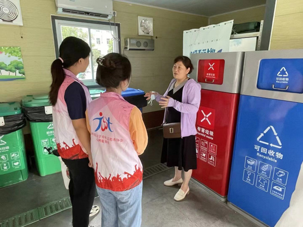 前往句容市垃圾分类站的同学,参观了生活垃圾分类收集区,并采访了相关工作人员。