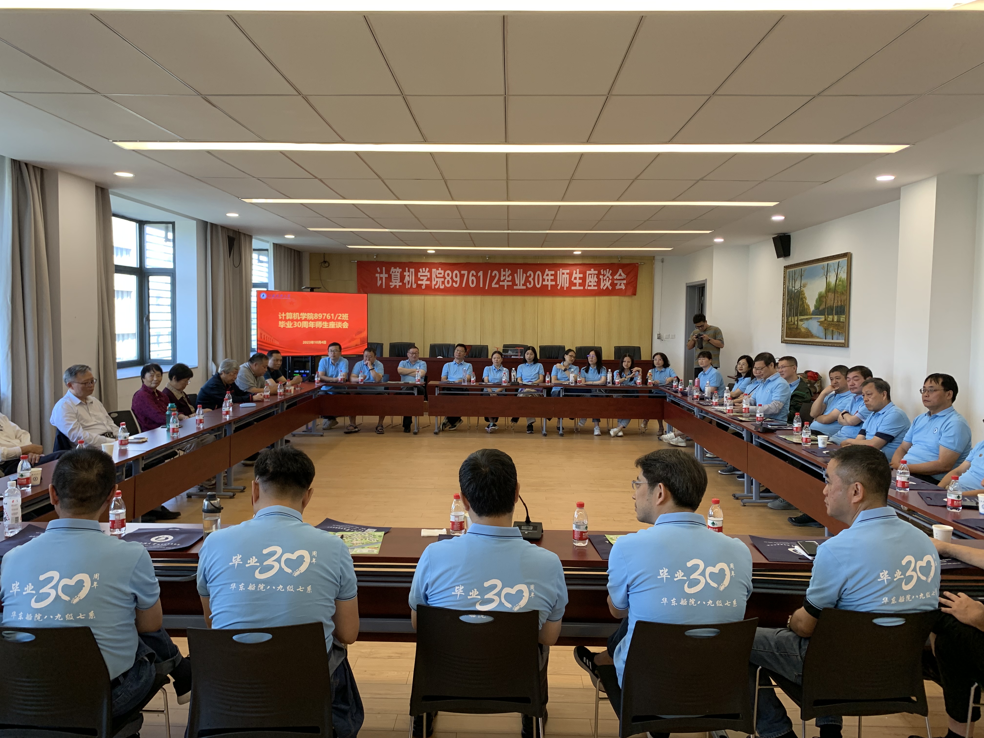国庆假期期间,计算机学院89761、89762班36位校友纷纷回到阔别已久的母校,参加毕业30周年活动重温江科大求学时光,再叙师生同窗情谊,交流学习工作心得,共同展望美好未来。计算机学院党委书记高尚、信化办主任韩斌、计算机学院党委副书记吴健康、计算机学院副院长史金龙,班主任顾建业、胡广鹏和老教师代表陈保香、刘镇、归宝琪、魏元凤、曾芳芳、王阿娣等老师参加交流活动。