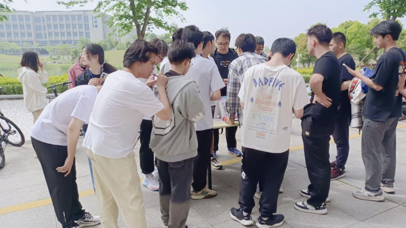 紧接着来到粮食学院楼十字路口处,团队的同学们齐心协力,展示才华和智慧,思考回答着一道道有趣问题,进一步引发同学们的思考和探索。