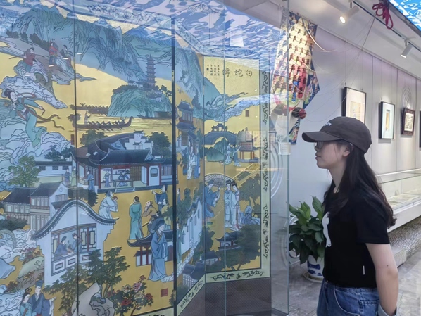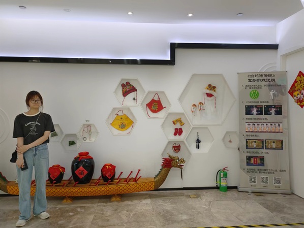 随后,团队成员们来到了白蛇传展馆,这里通过现代多媒体技术,将这一流传千年的民间传说生动地呈现在大家面前。白蛇传作为中国四大民间爱情传说之一,其故事内涵丰富,情感真挚,深深打动了每一位参观者的心。通过互动体验,实践团成员们仿佛穿越时空,与传说中的人物进行了一场心灵的对话。