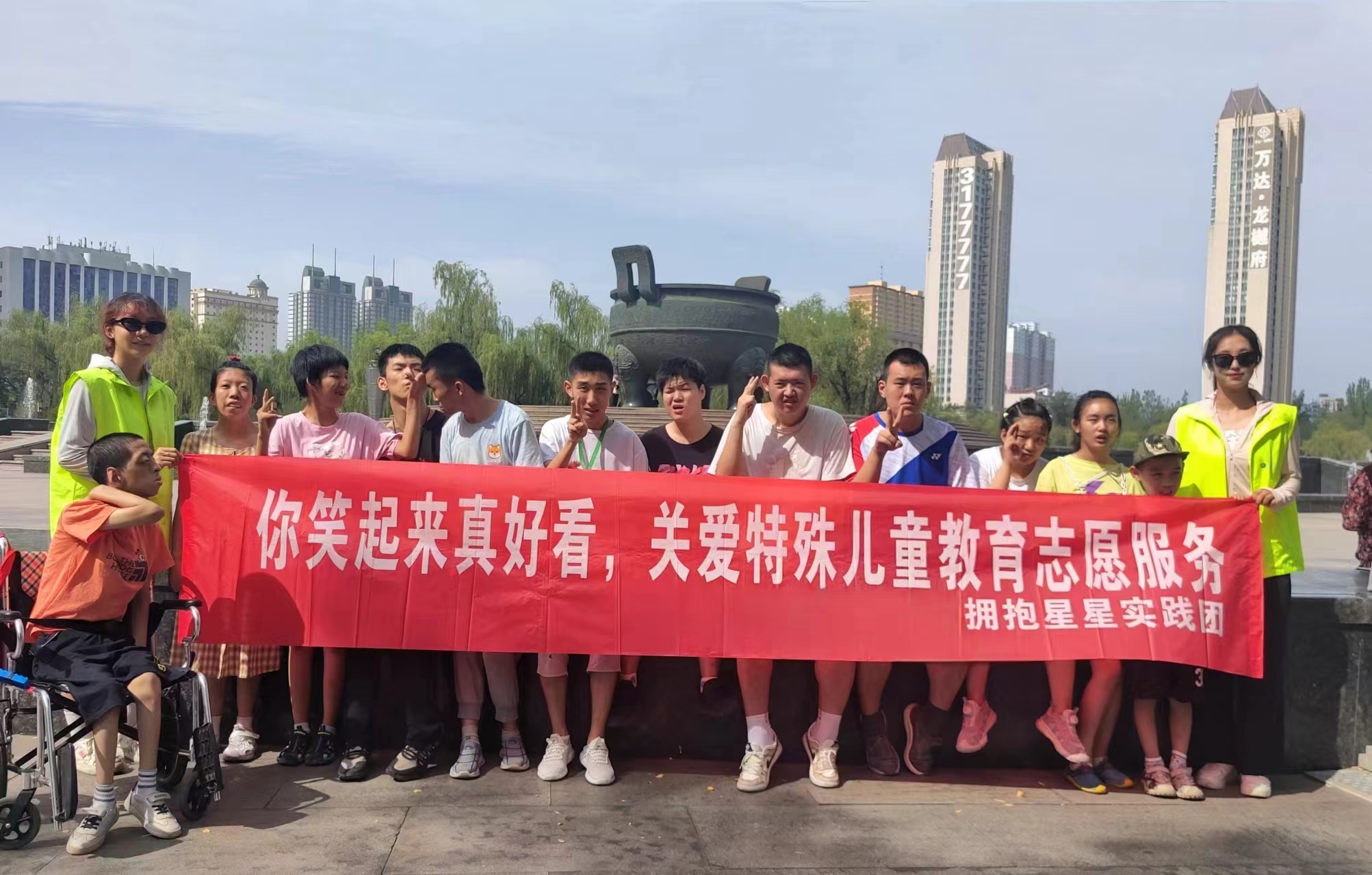 在志愿服务过程中,她与其他志愿者一起陪伴特殊儿童们逛公园,进行辅助康复训练,让孩子亲近大自然的同时获得了快乐。