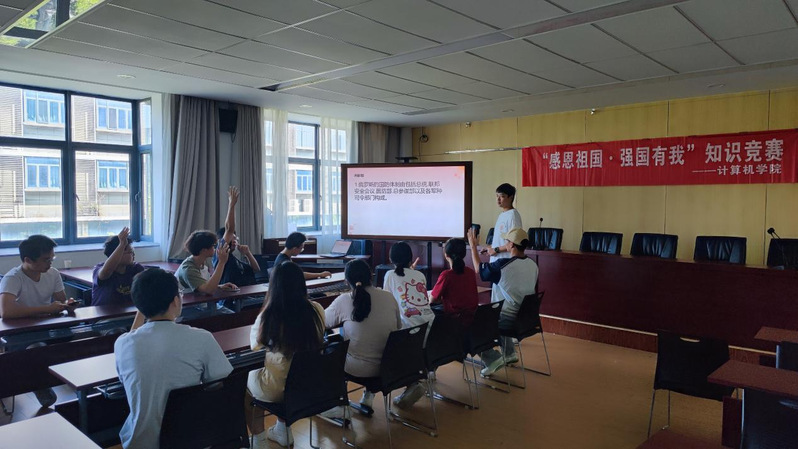 2024 年 9 月 28 日,在这个充满希望与活力的日子里,计算机学院成功举办了一场以“感恩祖国,强国有我”为主题的知识竞赛。此次竞赛旨在激发学生的爱国热情,提高学生的综合素质,同时也为同学们提供了一个展示自我的平台。