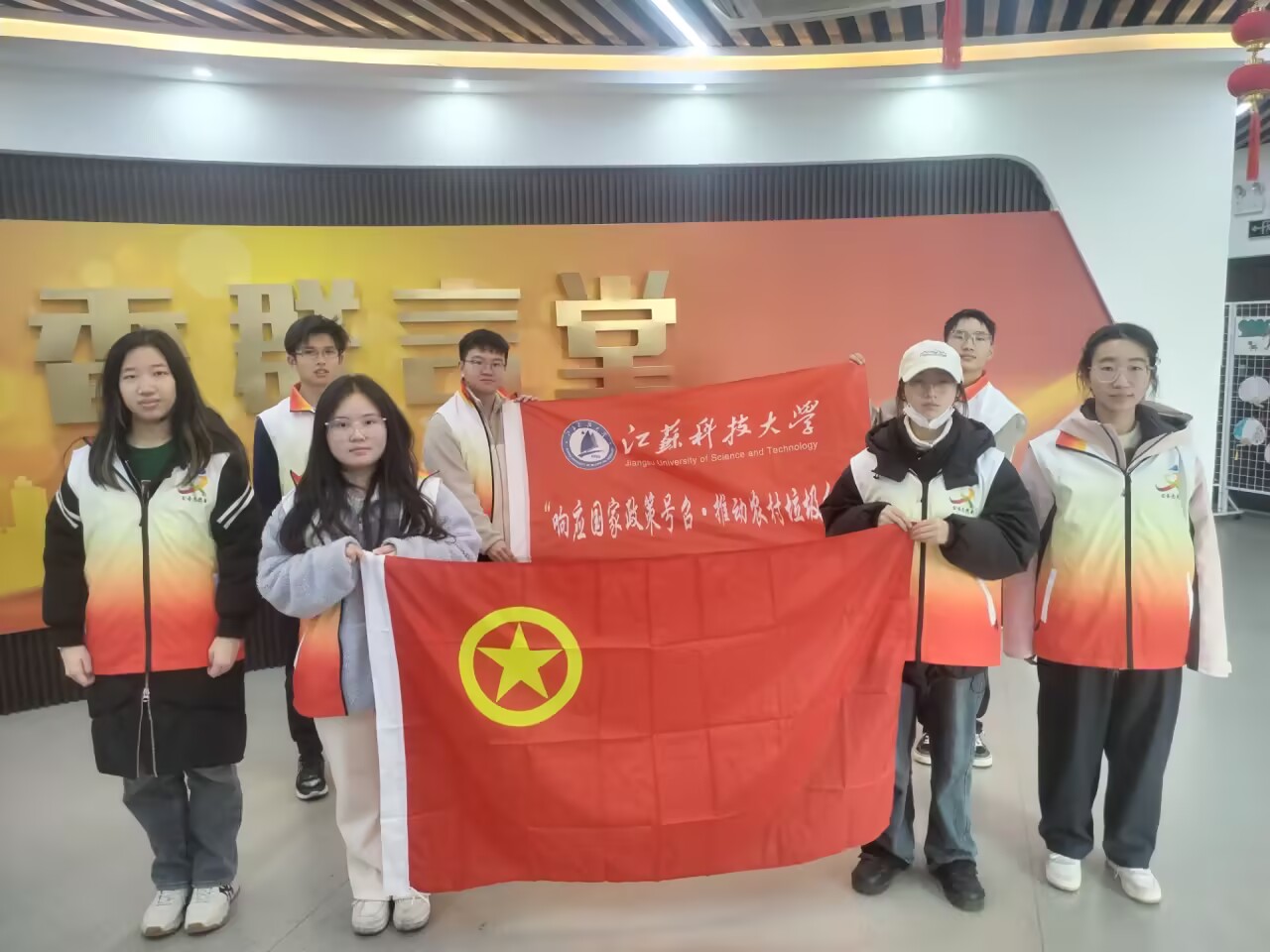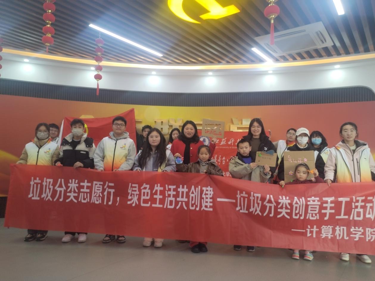 图为江苏科技大学计算机学院“循环之美”公益服务实践团的同学一起合影留念