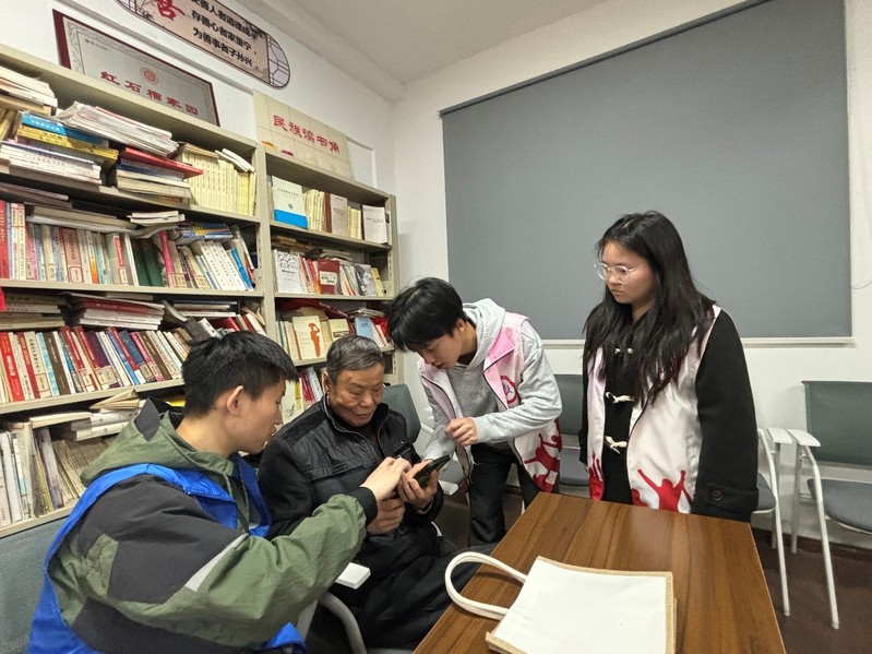 图为江苏科技大学“智慧助老”公益服务实践团的同学为老人进行“多对一”指导
