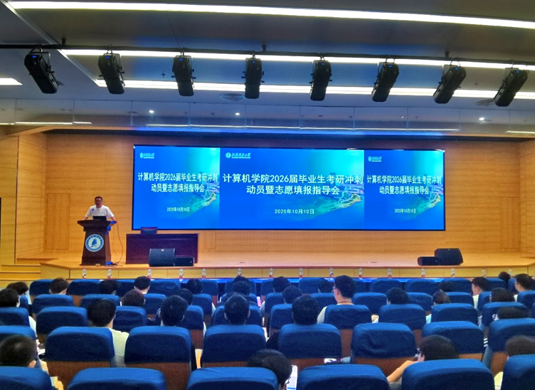 为帮助2026届考研学生深入了解考研政策与形势,科学规划报考目标,增强备考信心,计算机学院于10月10日下午在长山校区图书馆B105召开“计算机学院2026届毕业生考研冲刺动员暨志愿填报指导会”。学院全体领导班子成员、各系主任、专业负责人、青年博士教师、毕业班班主任、辅导员及2026届考研学生共同参加。会议由学院党委副书记吴健康主持。